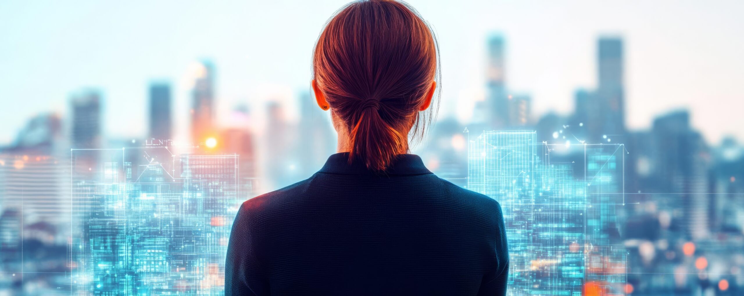 Visionary Aquarius woman designing a city, reflecting innovation and creativity