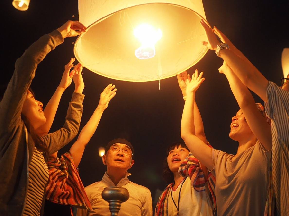 タンマガーイ寺院の人たちで、イーペン祭(Yee Peng Lanna International)の