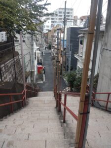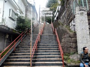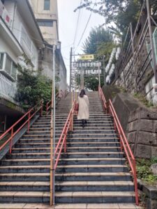 この後、神社に10分ほど滞在して帰る時には、階段の前には韓国人観光客が